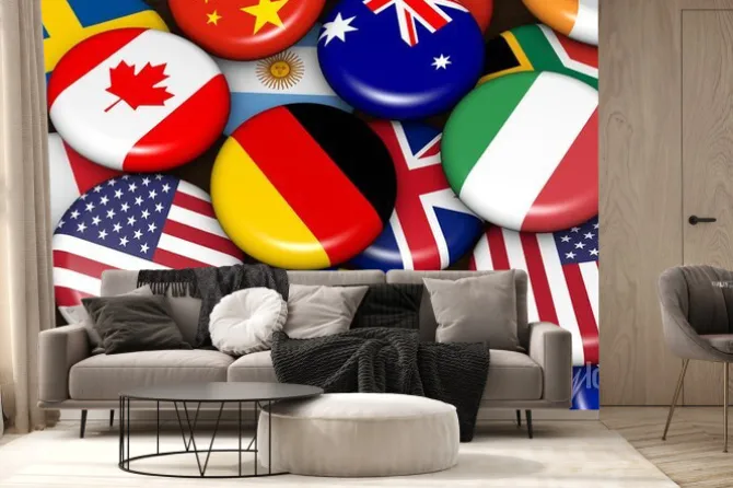 Fototapeta: Międzynarodowe flagi świata na identyfikatorach