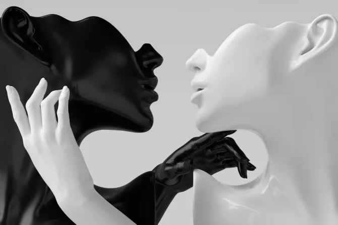 Miłość dwóch postaci w czerni i bieli abstrakcyjny kontrast.
