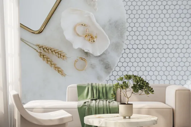 kobieta, widok, styl skandynawski, złoto, marmur, mozaika, Minimalistyczne, moda