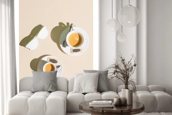Fototapeta: Minimalistyczna kompozycja kawowa na świetlistym tle