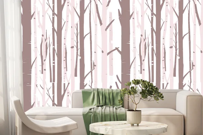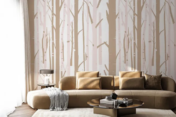 Fototapeta: Minimalistyczny las brzozowy w bajkowym stylu