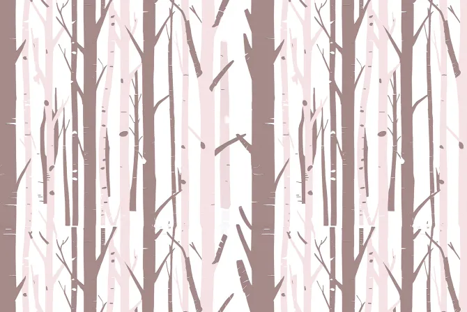 Minimalistyczny las brzozowy w bajkowym stylu.