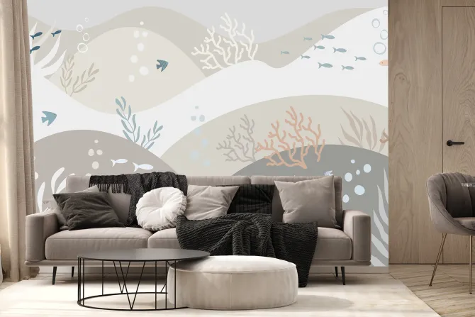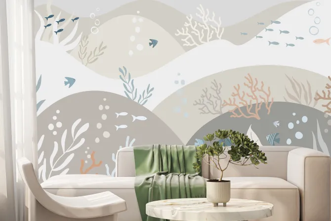 fala, woda, morze, szkoła, styl skandynawski, rafa, ocean, pokój dziecięcy, rysunek