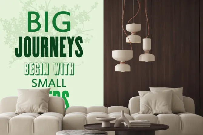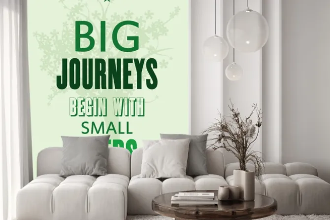 Motywacyjne Plakat – wielkie podróże zaczynają się od małych kroków.