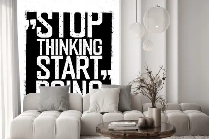 Fototapeta: Motywacyjny plakatu. „przestań myśleć zacząć robić”. czarno-whit