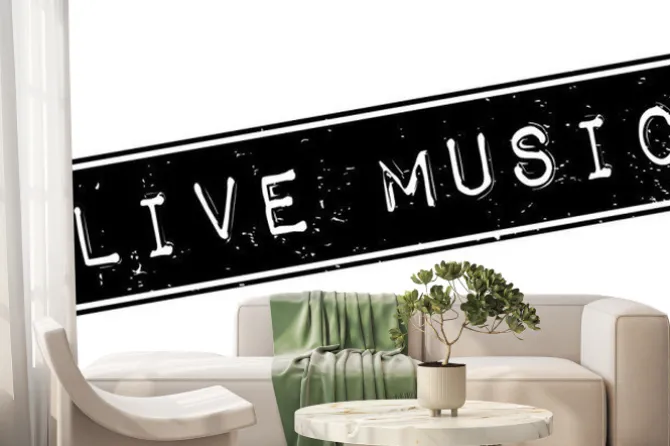 Fototapeta: Muzyka na żywo pieczątka. grunge design z zarysowaniami pyłu.