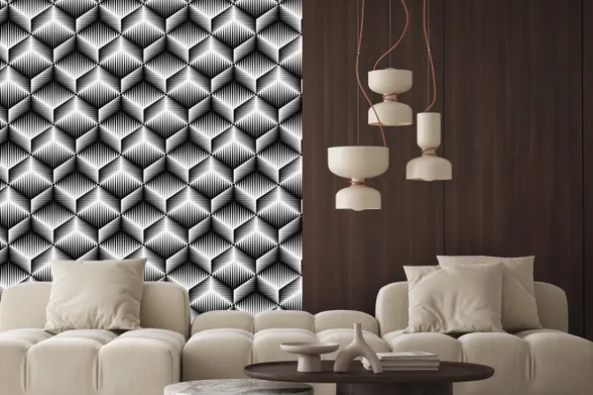 iluzja, ornament, mozaika, moda, efekt 3D, retro, tekstury, czarny