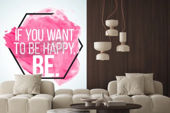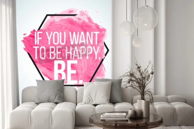 Nowoczesne inspirujący cytat na tle Akwarele – jeśli chcesz być szczęśliwy, bądź.