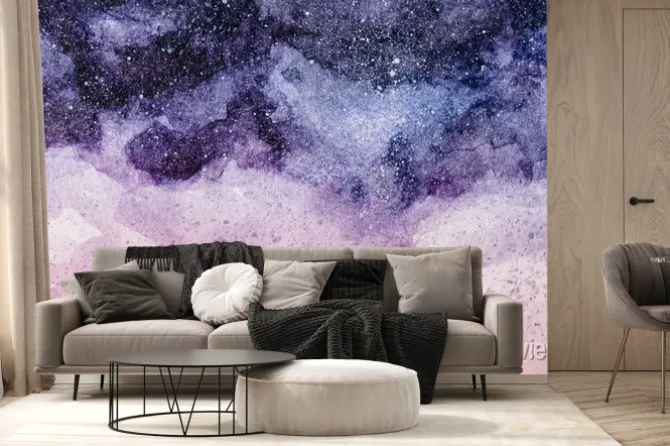 Obraz pełnoekranowy obraz nocnego nieba z fioletowym i różowym tłem akwareli.