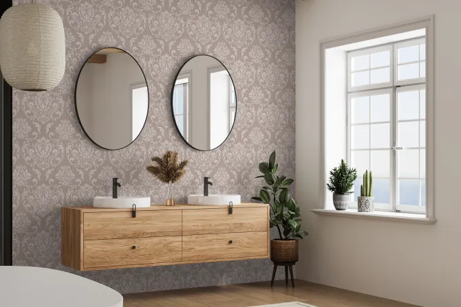 Ornamentowy wzór na beżowym tle.