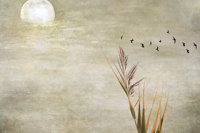 Pełnia księżyca ptaki i trawa na tle betonu.
