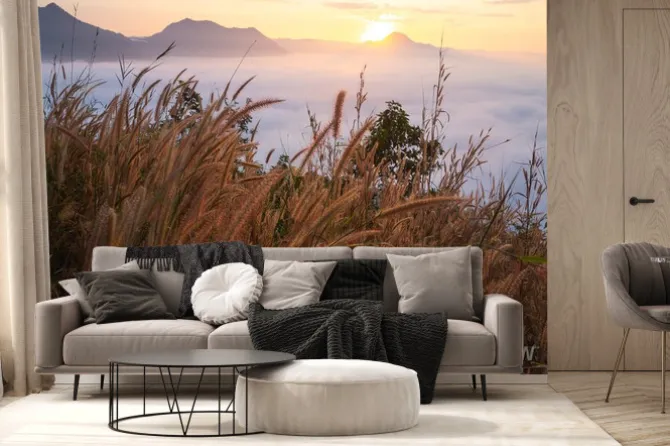Fototapeta: Piękny krajobraz dużo mgły phu thok