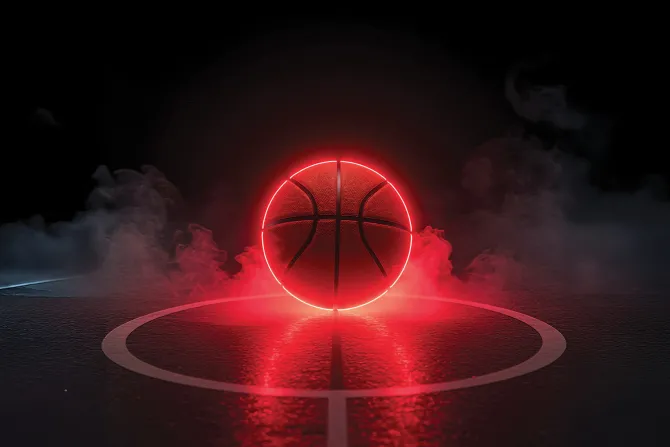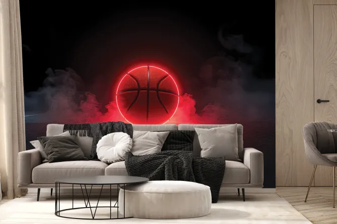 Fototapeta: Piłka do koszykówki z neonem we mgle
