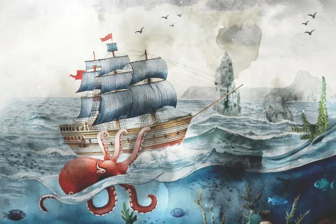 Be the first to review “Fototapeta: Podwodny świat z ośmiornicą statkiem i rybami bajkowy wzór” Anuluj pisanie odpowiedzi