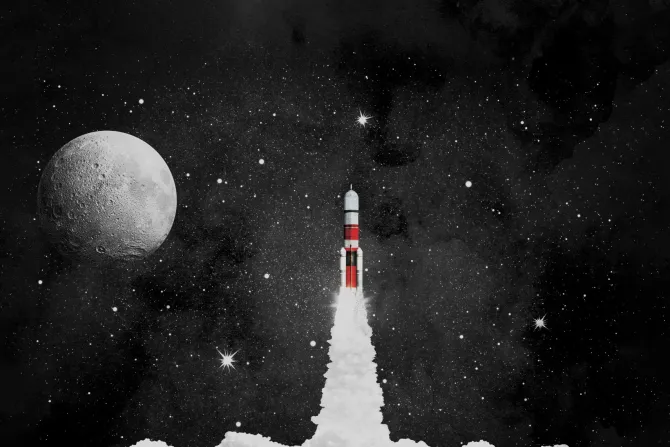 akwarela, wszechświat, niebo, gwiazdy, księżyc, kosmos, rakieta