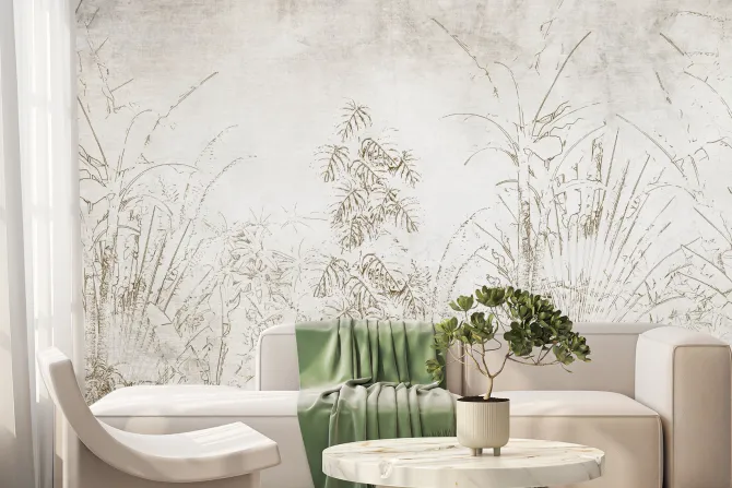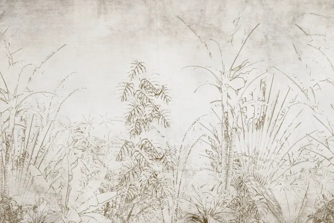Fototapeta: Rośliny tropikalne na tle beżowo szarego betonu