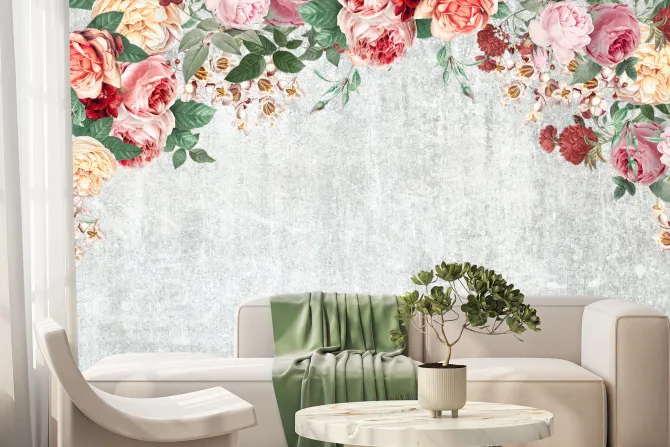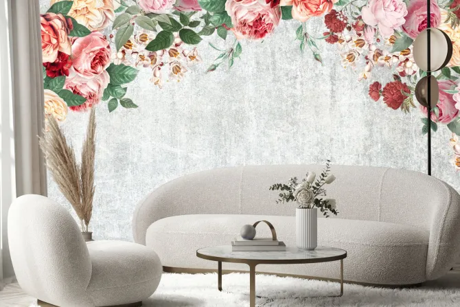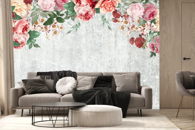 Fototapeta: Róże na szarym tle z teksturą betonu