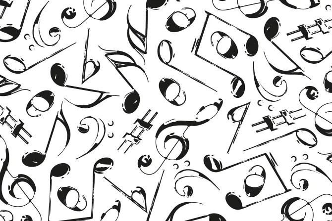 Różnorodne nuty muzyczne.
