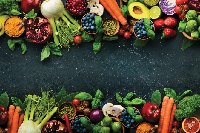 Fototapeta: Różnorodne warzywa i owoce z nasionami