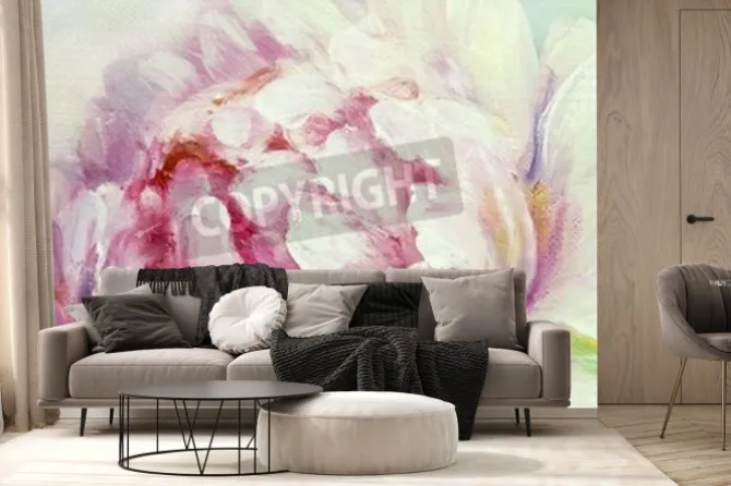 Fototapeta: Różowe i białe piwonie w stylu malarstwa olejnego