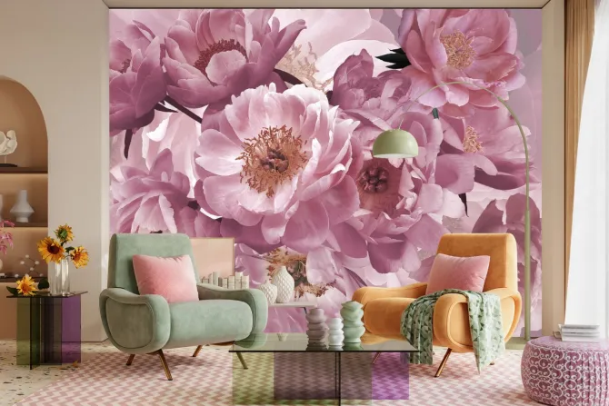 Fototapeta: Różowe kwiaty piwonie z bliska