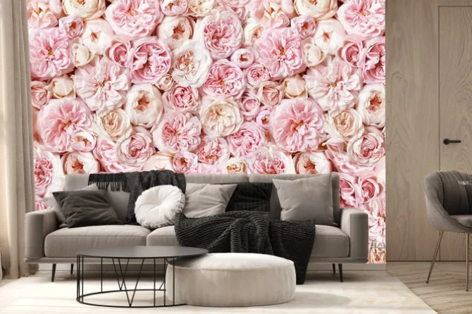 Fototapeta: Różowe pastelowe róże w gęstym układzie