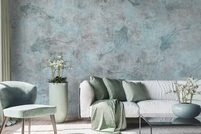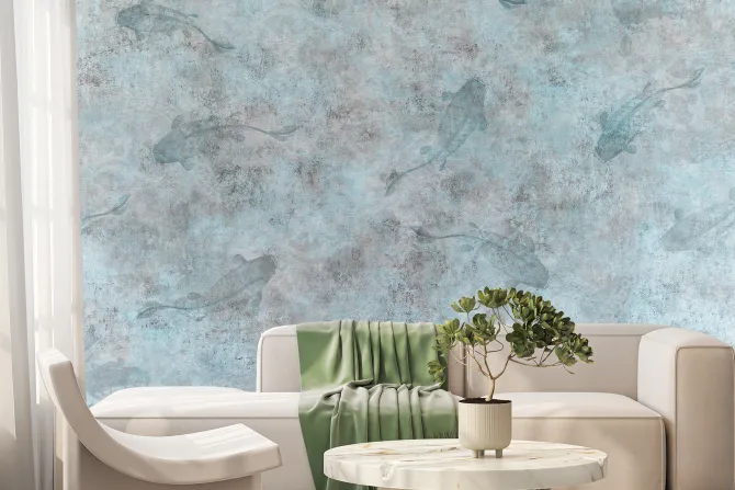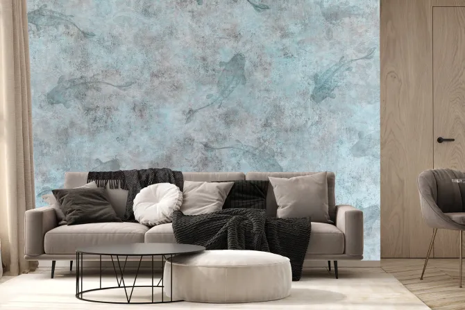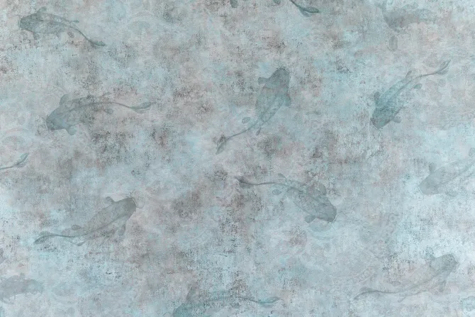 Fototapeta: Ryby na tle betonu w odcieniach niebieskiego