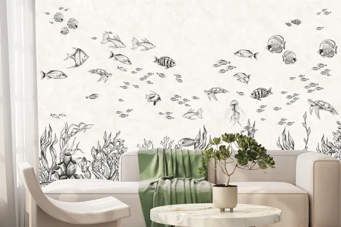 Ryby w podwodnym świecie minimalistyczna ilustracja.