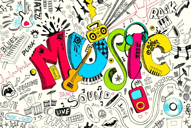 Rysunkowy muzyczny wzór w stylu komiksu .