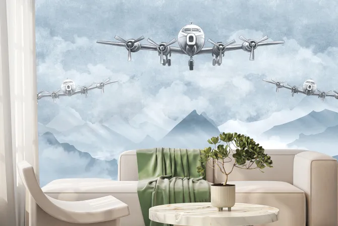 Fototapeta: Samoloty i górski pejzaż w odcieniach niebieskiego