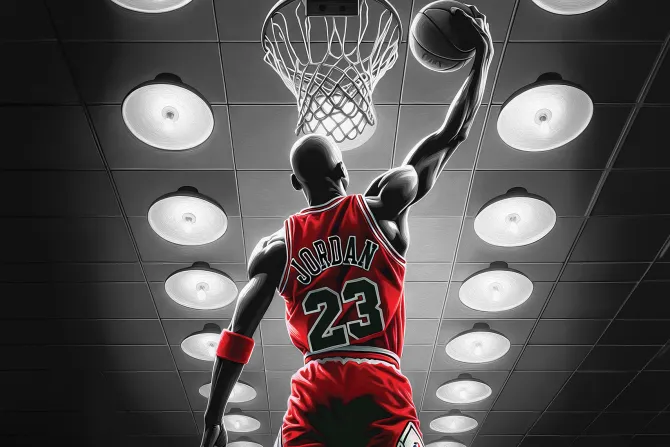 Sportowiec rzucający piłką do kosza.
