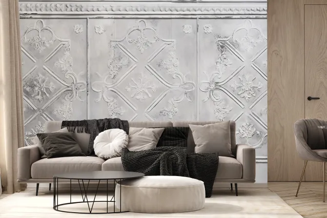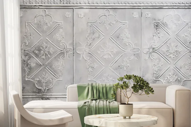 Fototapeta: Surowa szara ściana ze zdobieniami
