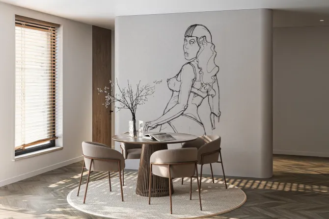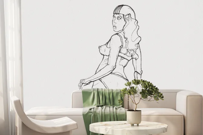 Fototapeta: Szkic atrakcyjnej kobiety w bieliźnie
