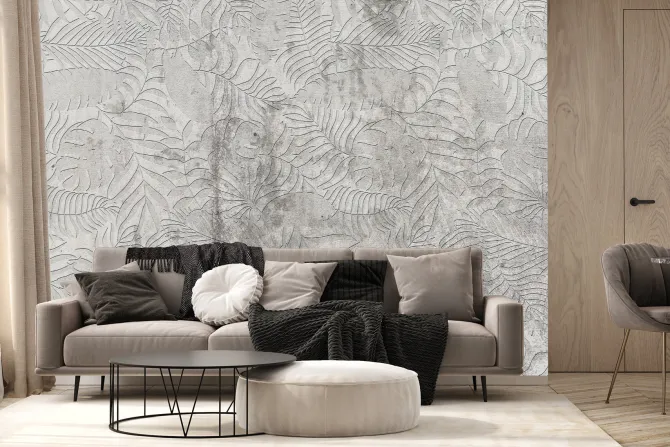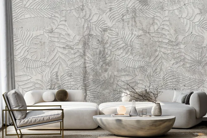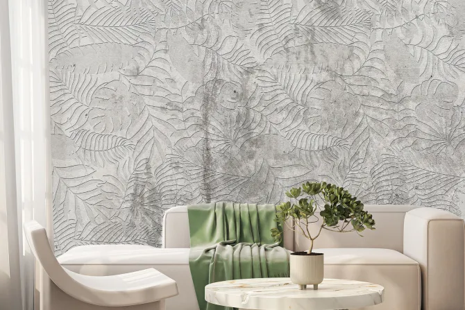 Fototapeta: Tropikalne liście na teksturowym betonowym tle