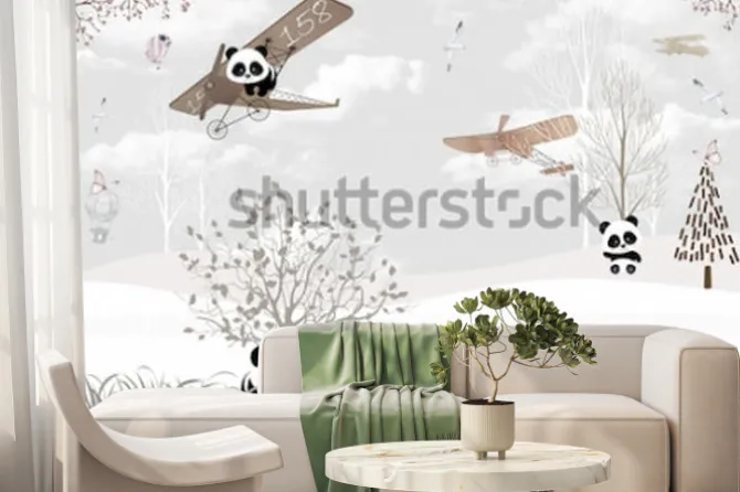 Fototapeta: Urocze pandy latające samolotami w zimowym lesie