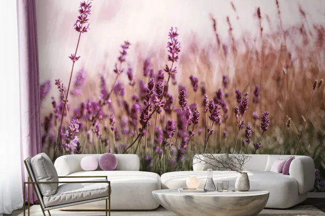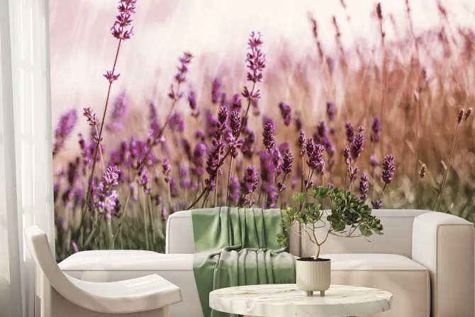 Fototapeta: Zielona łąka z kwiatami lawendy