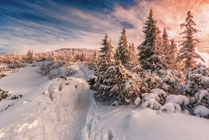 europa, choinka, krajobrazy, Boże Narodzenie, panorama, drzewo, zachód słońca, Polska, góry