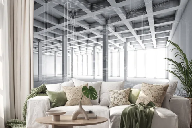 Naklejka: 3d puste wnętrze ze skutkiem szkieletowym