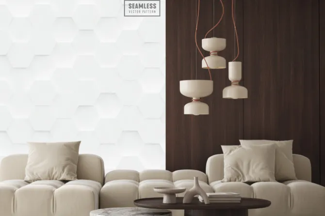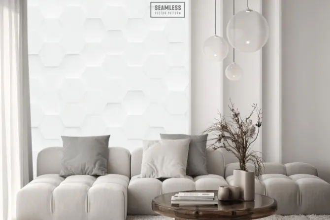 Naklejka: 3d sześciokąta wektoru poligonalny bezszwowy wzór, biały geometryczny