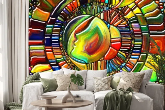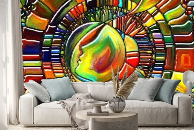 Naklejka: Abstrakcyjna kompozycja z twarzą