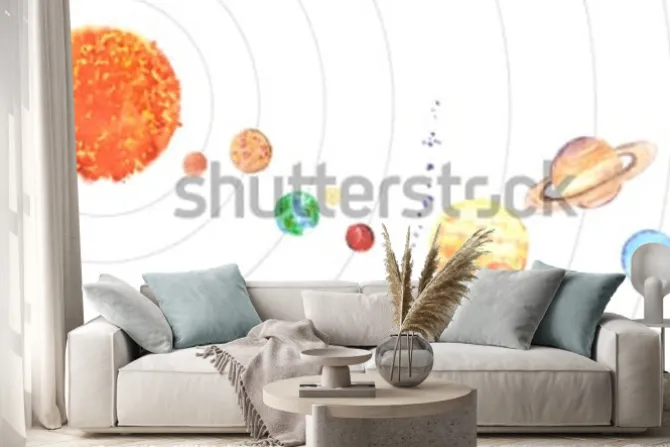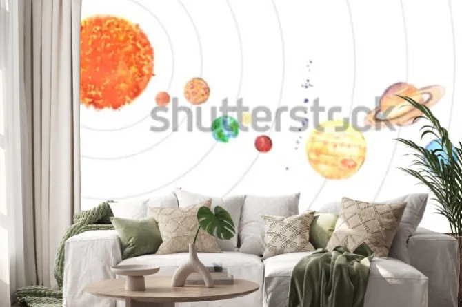 Naklejka: Akwarela układ słoneczny. słońce i planety (merkury, wenus, ziemia,