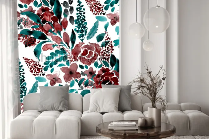 Naklejka: Akwarela wzoru wzór prosty kwiat wyciągnąć rękę. wzór w kwiaty.