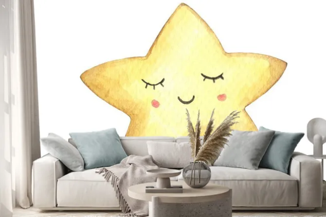 Naklejka: Akwarelowa uśmiechnięta gwiazdka