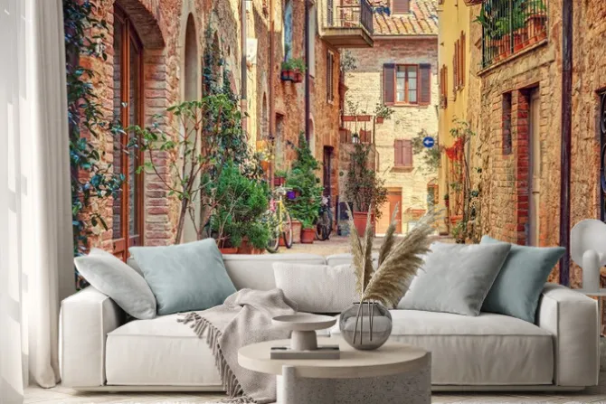 Naklejka: Aleja w starym mieście toskanii we włoszech