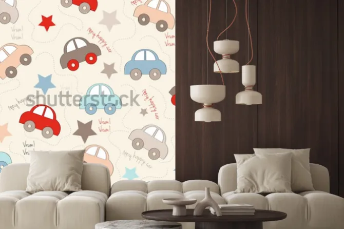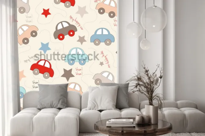 Naklejka: Bezszwowe tło z samochodami, ilustracji wektorowych