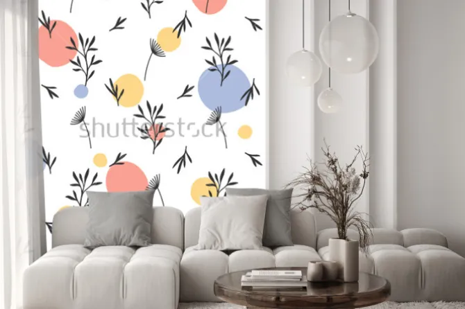 Naklejka: Bezszwowy kwiatu wzór. płaski ornament botaniczny z elementami