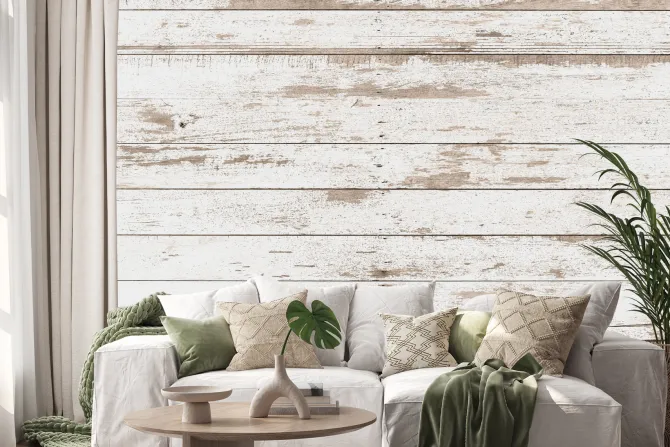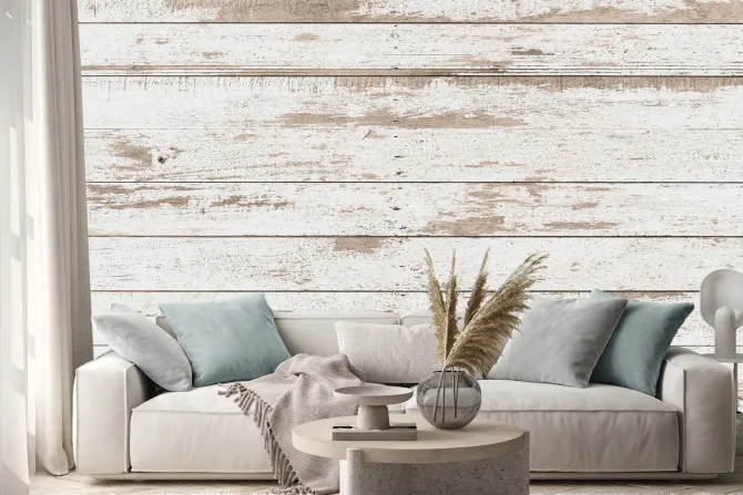 Naklejka: Biała deska drewniana tekstura