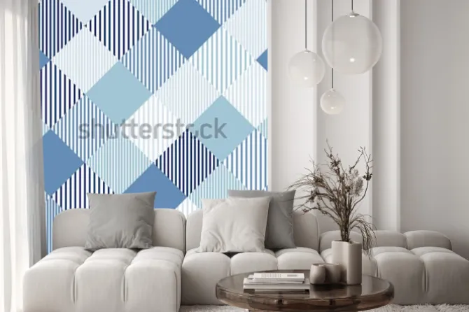 Naklejka: Błękitny i biały abstrakcjonistyczny prosty checker paskował