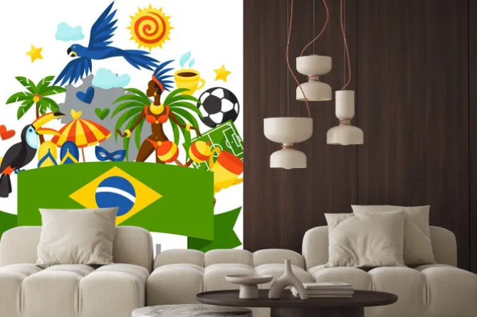 Naklejka: Brazylia tle stylizowane obiektów i symboli kulturowych
