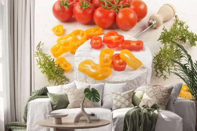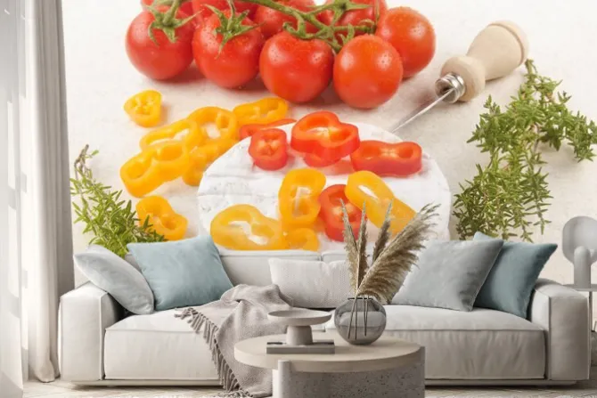 Naklejka: Camembert z papryką, pomidorem i tymiankiem